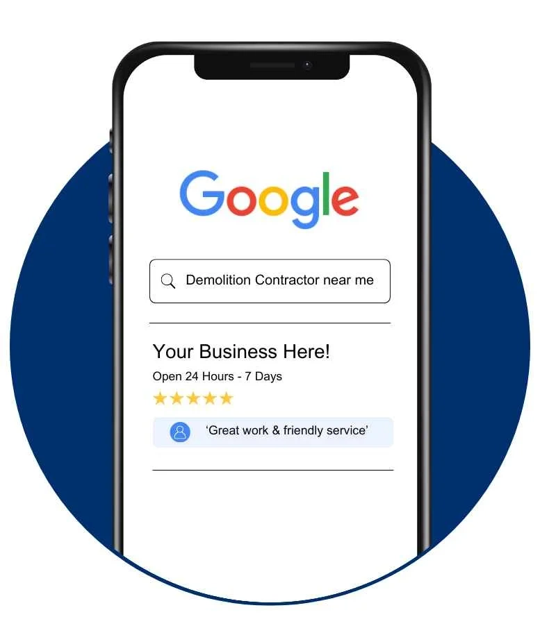 We understand that demolition businesses rely on steady project pipelines to maintain growth. Our locally focused digital marketing strategies ensure your company stands out when customers search online for demolition contractors, asbestos removal specialists, or site preparation experts. Instead of chasing low quality leads or competing with multiple contractors, you receive exclusive enquiries from people ready to move forward.